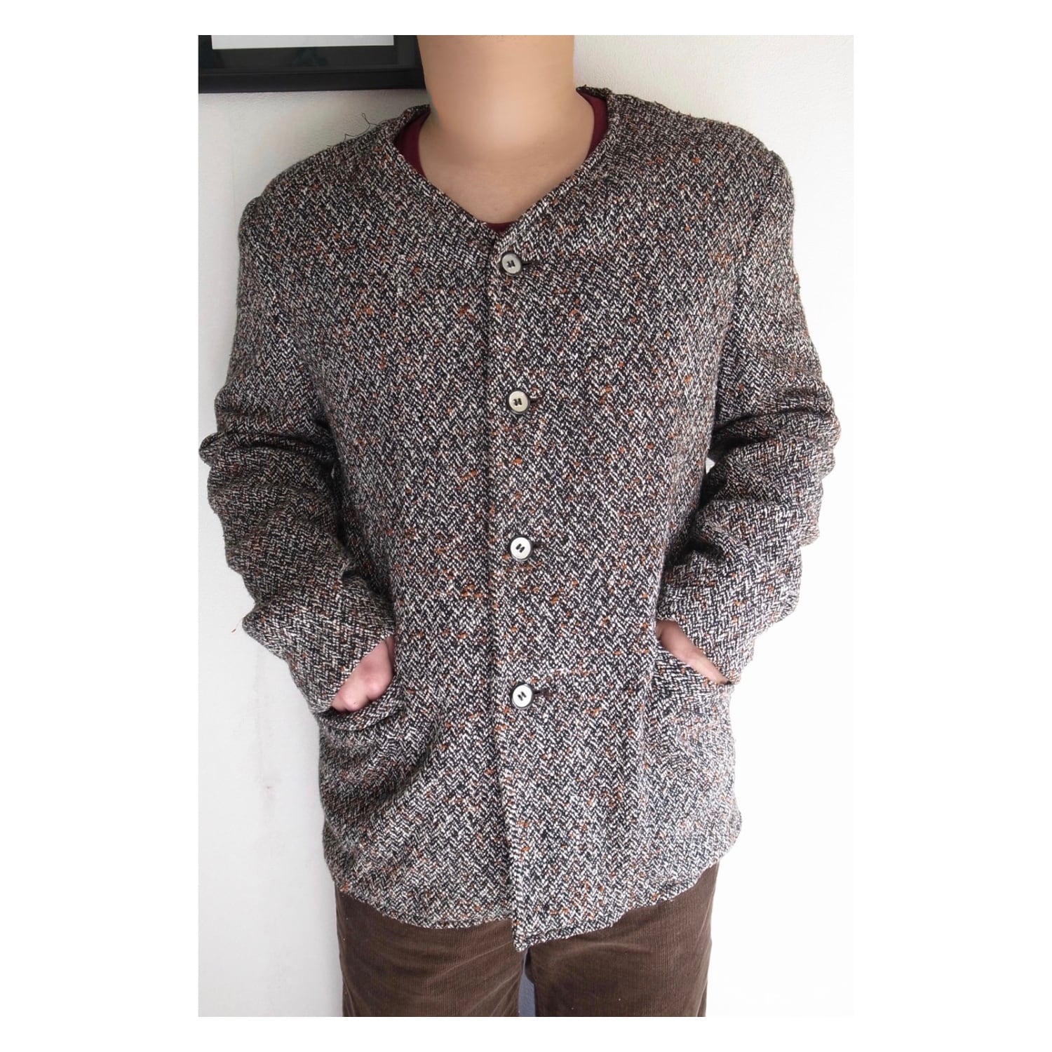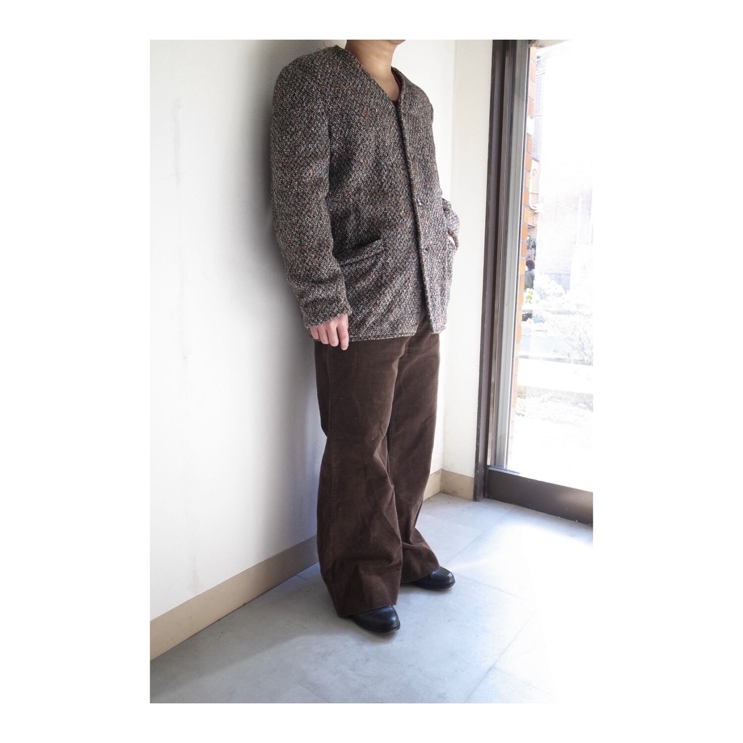 カーディガンとコートの間の様な感覚に陥るジャケットです。